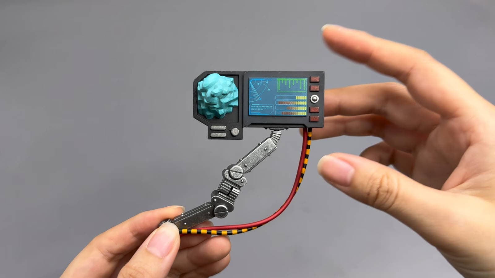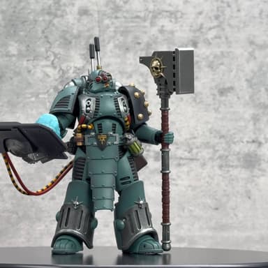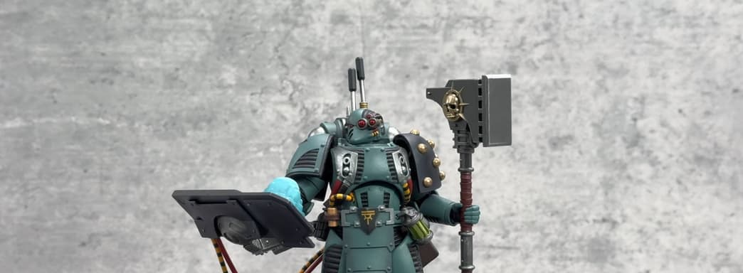 В коробке этой новинки можно обнаружить тело с суставами высотой 12,3 см и шириной 7 см. Также в комплект входят две сменные головы — со шлемом и без, ранец с планшетом, сменные кисти рук, подставка, болтер и двуручный силовой молот.