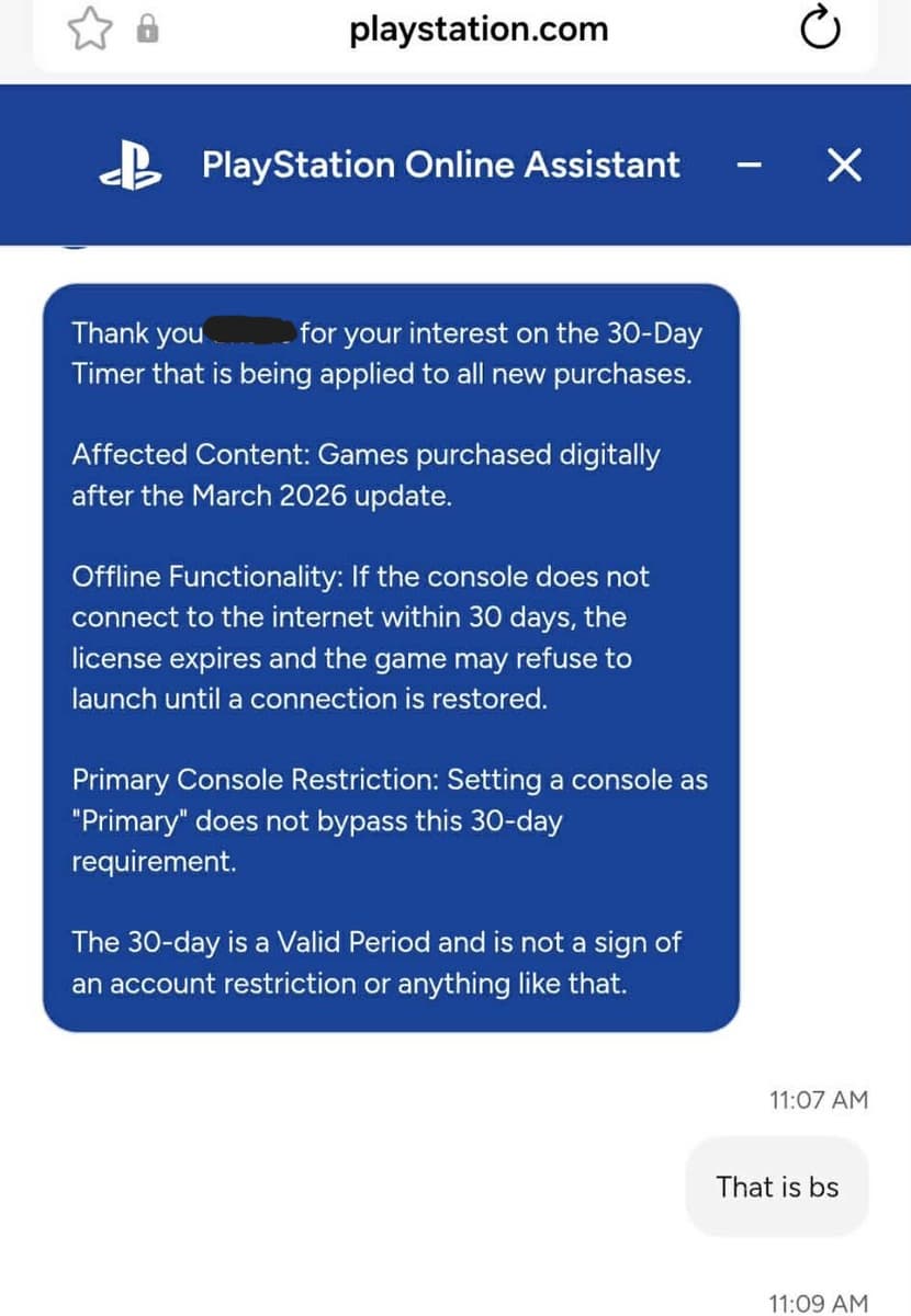 Многие пользователи ожидаемо возмутились новой системой и ринулись за разъяснениями к службе поддержки PlayStation, агенты которой подтвердили необходимость регулярно подтверждать право владения своими же играми.