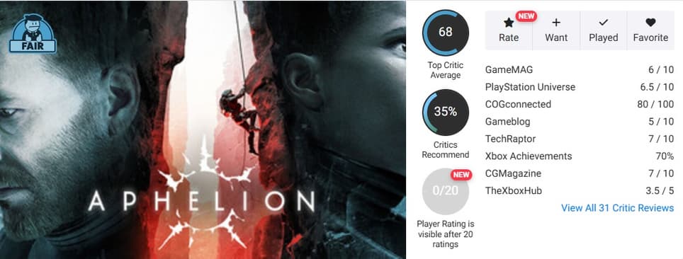 Первые отзывы об Aphelion оказались сдержанными. В рецензиях часто встречаются оценки на уровне 7/10, но есть и заметно ниже — 4/10 от GamesRadar и 5/10 от Gamereactor и SECTOR.
