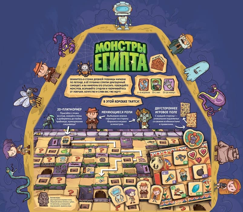 Сейчас благодаря акции «Ранние пташки» его позволят купить за 1490 рублей (но потом цена увеличится до 1590 рублей). Промо-набор для настолки «Зомби в доме» получат все предзаказчики. Кроме того, если кампания соберёт 150 000 рублей, команда подарит специальный набор, с помощью которого в «Монстров Египта» получится сыграть уже всемером.