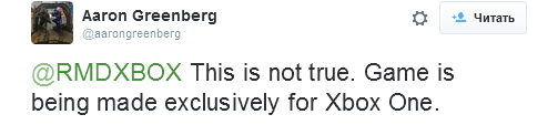 Комментарий Аарона Гринберга, который, вероятно, переживает, что подобные заявления разработчиков могут плохо отразиться на продажах игры: «Это неправда. Игра создается эксклюзивно для Xbox One».