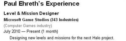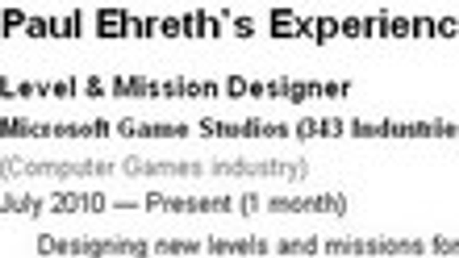 Дизайнер Пол Эрет (Paul Ehreth) одно время работал в Microsoft Game Studios над Shadowrun, затем он перешел Sony Online Entertainment, где создавал локации для MMOG The Agency, после чего вновь вернулся в Microsoft. Пол Эрет работал над Kinect Adventures, а с этого месяца он занялся «дизайном локаций и новых миссий для следующего проекта серии Halo».