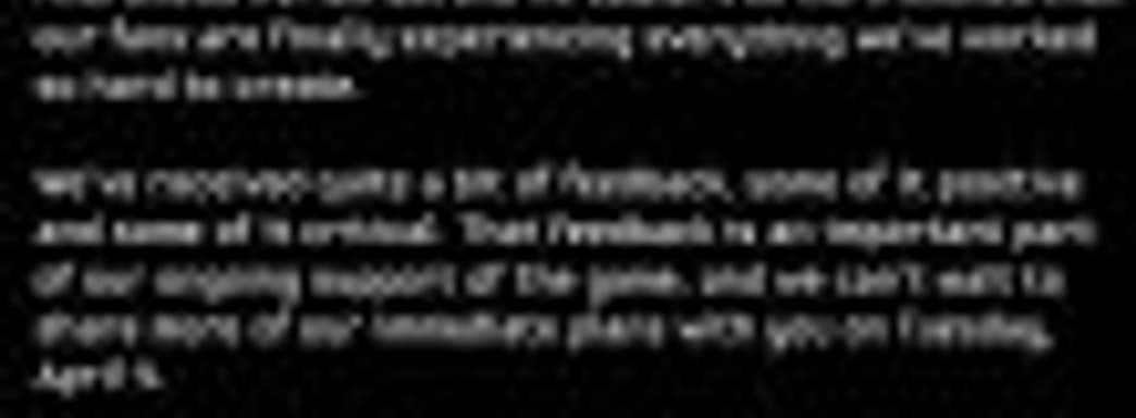 «Мы получили различные отзывы об игре. Некоторые из них положительные, некоторые содержат критику. Ваши отзывы являются важной частью дальнейшего развития и поддержки игры. Мы с нетерпением ждём 4 апреля, когда сможем поделиться с вами нашими планами на ближайшее будущее», - говорится в заявлении.