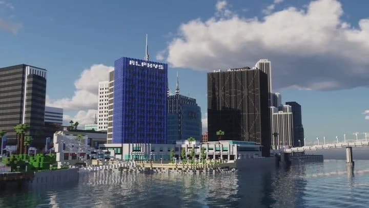 Может показаться, что первое изображение — это стилизованная открытка. Но если всмотреться, то можно увидеть, что это Minecraft. Размер мегаполиса и детализация впечатляют.