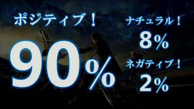 Опрос, который проводился при выходе со стенда с демо-версией Final Fantasy XV, показал, что 90% игроков, опробовавших демо-версию Final Fantasy XV, остались довольны. Лишь 2% заявили, что им игра не понравилась, 8% остались нейтральными в своей оценке.