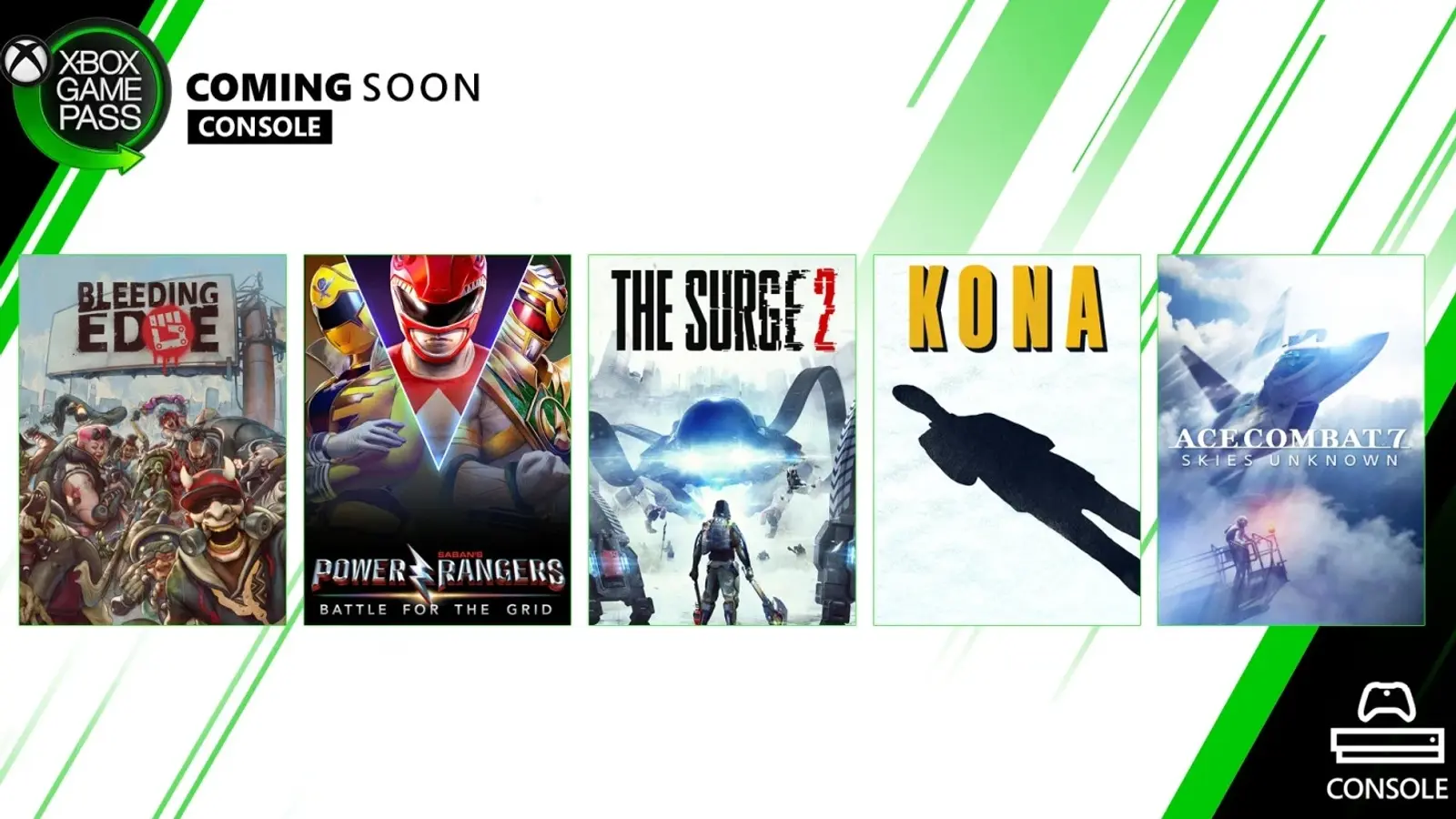 Обладатели Xbox One 19 марта смогут скачать аркадный авиасимулятор Ace Combat 7: Skies Unknown, приключение с элементами симулятора выживания Kona и боевую ролевую игру The Surge 2. 24 марта появится сетевой боевик Bleeding Edge, а 26 марта – файтинг Power Rangers: Battle for the Grid.