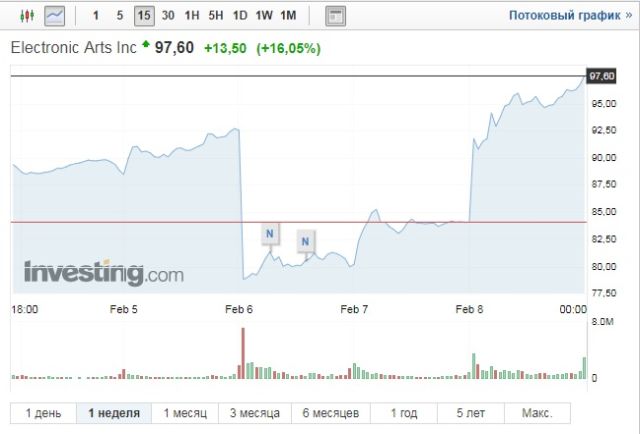 Однако со среды они выросли на 16%, за что компания должна благодарить «королевскую битву» Apex Legends. Но ситуация с ценой на акции может измениться. Инвесторы увидели первую популярность игры, которая показывает более успешный старт, чем в своё время Fortnite. У создателей Apex Legends есть план развития, в марте в продаже появятся «боевые пропуска» и только тогда станет понятно какую прибыль начнёт приносить продукт.