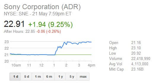 После анонса новой консоли Xbox One существенно выросли в цене акции главного конкурента Microsoft на рынке игровых консолей - японского платформодержателя Sony.