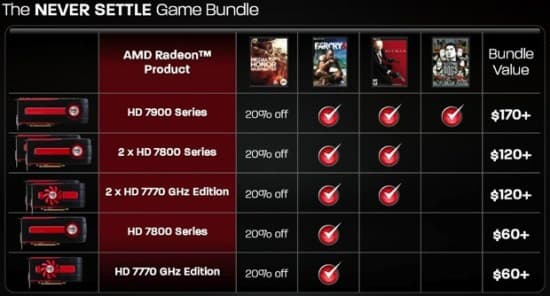 Теперь, став обладателем любой видеокарты начиная с Radeon HD 7770 GHz Edition, вы можете получить коды для бесплатной загрузки Far Cry 3, Hitman: Absolution, Sleeping Dogs, а также скидку в 20% на Medal of Honor: Warfighter.