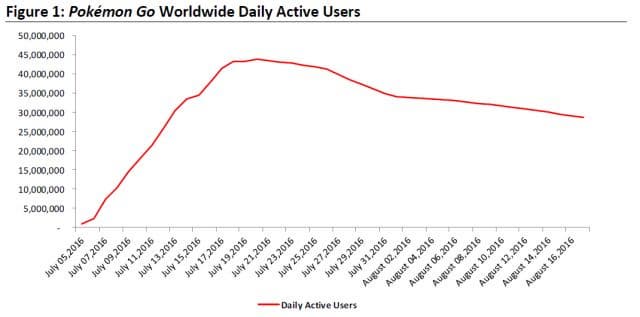 Аналитическая компания Axiom Capital Management утверждает, что популярная мобильная игра Pokemon Go стремительно теряет аудиторию. По данным аналитиков, в августе число активных пользователей Pokemon Go по всему миру, ежедневно запускающих игру, уменьшилось на 15 миллионов человек по сравнению с июлем 2016 – с 45 миллионов в день (рекордный показатель) до 30 миллионов в день.