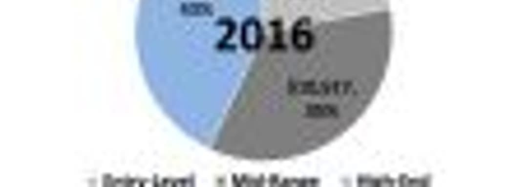 Jon Peddie Research разделяет рынок «РС-железа» на три основных сегмента – начальный уровень (Entry-Level), средний уровень (Mid-Range) и производительные РС (High-End). Как показано на диаграмме, основная часть общих продаж «РС-железа» приходится на производительные РС (43%). Однако это не означат, что пользователи не очень мощных РС не интересуются играми.