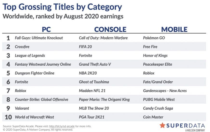 Аналитическая компания SuperData опубликовала данные о цифровых продажах игр в августе этого года. Общая выручка от цифровых продаж составила 10,8 миллиардов долларов.