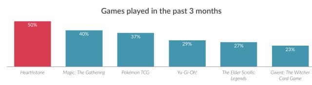 Самой популярно карточной игрой в США является Hearthstone. В течение трёх последних месяцев 50% пользователей таких проектов играли в Hearthstone, на втором месте Magic: The Gathering – 40%.
