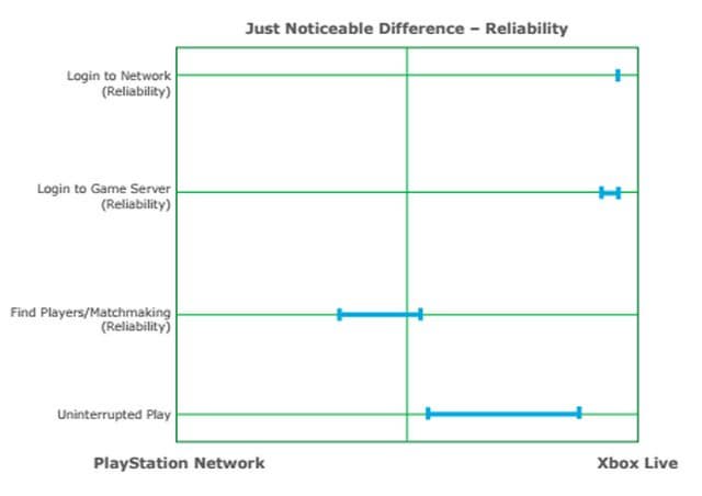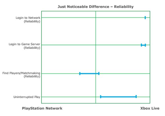 В отчёте IHS Markit сравниваются различные показатели надёжности двух сервисов, будь то подключение к сервису, соединение с сервером или поиск других игроков (матчмейкинг). PSN обошёл Xbox Live только в том, что касается матчмейкинга. Не последним фактором стало то, что периодически возникают проблемы в работе сервиса PSN.