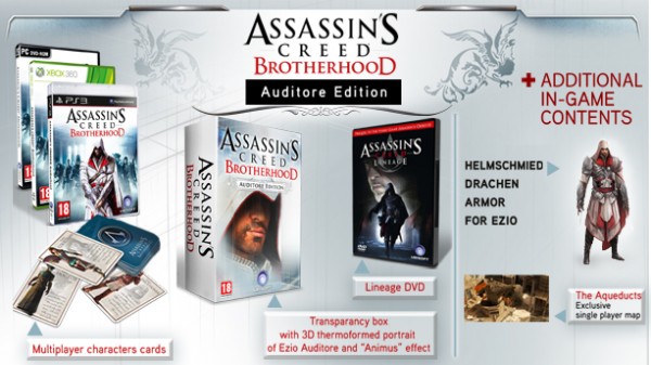Компания Ubisoft продолжает анонсировать различные варианты изданий приключенческого экшена Assassin's Creed: Brotherhood. Сегодня пришла пора рассказать вам об Assassin's Creed: Brotherhood: Auditore Edition, которое доступно для заказа через онлайновый магазин UbiShop.