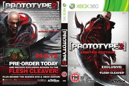 В состав Prototype 2 Limited Edition войдут бонусный DVD с роликами о создании игры, тематическая одежда для аватара, а также эксклюзивное оружие Flesh Cleaver - последнее полагается только в том случае, если вы оформите предварительный заказ.