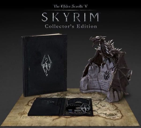 Кроме того, помимо копии игры, покупатели The Elder Scrolls V: Skyrim Collector's Edition получат карту игрового мира, The Art of Skyrim - массивный арт-бук на 200 страниц с габаритами 24 на 31 см, а также DVD The Making of The Elder Scrolls V: Skyrim, включающий эксклюзивные видеоматериалы, интервью с представителями Bethesda Game Studios и другой бонусный контент.