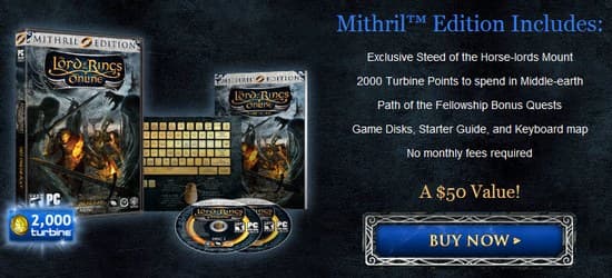 За $29,99 покупатели The Lord of the Rings Online - Mithril Edition получат копию игры на диске, инструкцию для новичков, описание всех кнопок на клавиатуре, 2000 Turbine Points для покупки полезных вещей в игровом магазине, а также эксклюзивный игровой контент.