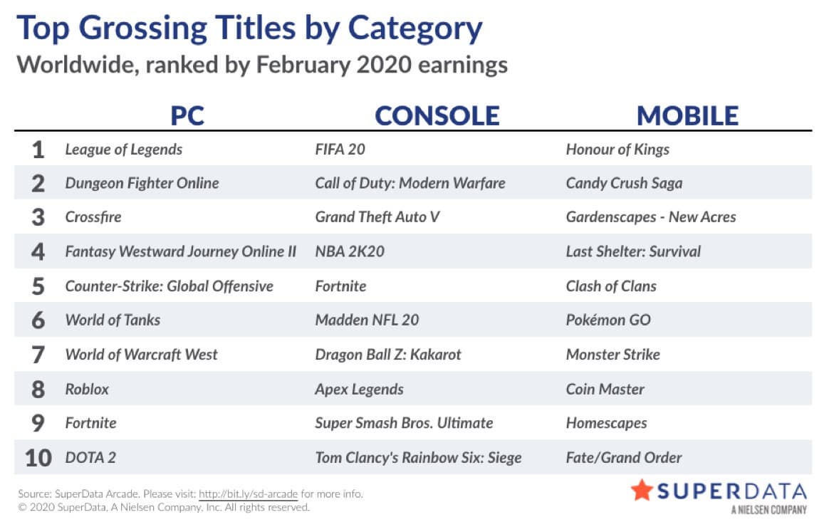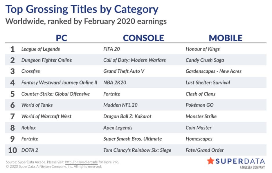 Аналитики SuperData опубликовали февральский отчёт о состоянии цифрового рынка видеоигр