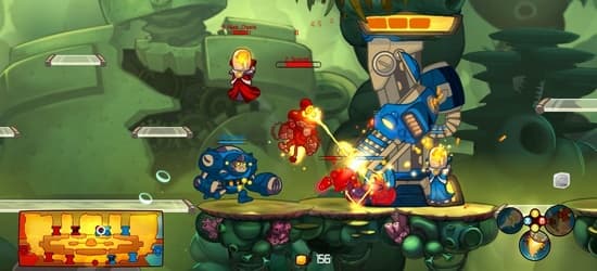 В Awesomenauts разработчики остались верными двухмерному стилю, но сменили жанр, теперь речь идет не о стратегии, а о MOBA - multiplayer online battle (мультиплеерные онлайновые сражения).