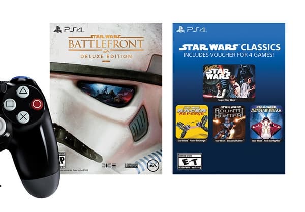 Компания Sony официально анонсировала бандл The Limited Edition Star Wars Battlefront PS4, который включает украшенную изображением Дарта Вейдера 500-ГБ консоль, копию Star Wars Battlefront Deluxe Edition, а также 4 классические игры по вселенной Star Wars: