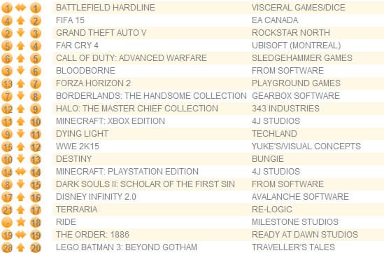 Мотоциклетный симулятор Ride поднялся с 31 на 18 место, благодаря выходу версий для Xbox One и Xbox 360.