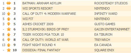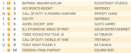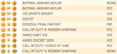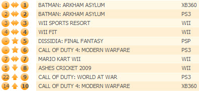 Подоспели свежие данные по продажам видеоигр на территории Соединенного Королевства. Игра Batman: Arkham Asylum продолжает удерживаться на первом месте в общем зачете, опережая Wii Sports Resort.