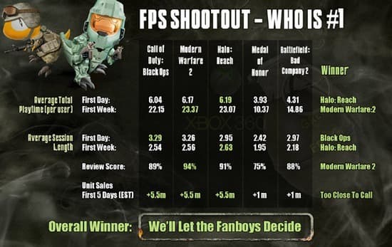 При этом, если сравнивать реальные продажи, оценки критиков, а также время, проведенное пользователями Xbox Live в мультиплеере, то победителем Black Ops назвать никак не получится.