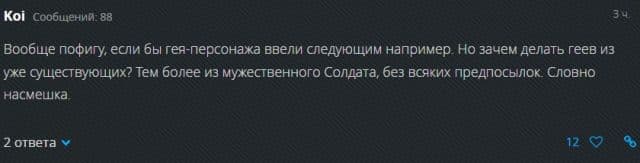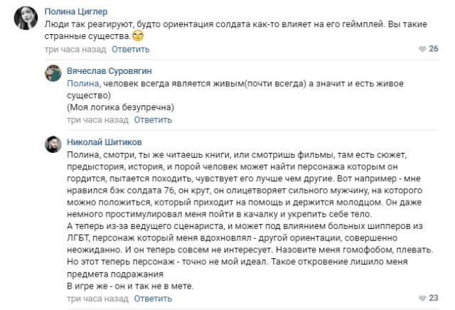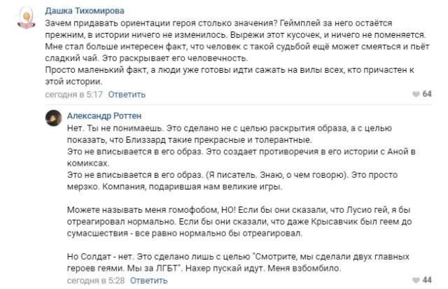 Игроки не понимают зачем делать геем Солдата 76, который всегда был воплощением мужества. Ведь не так давно геймеров шокировали тем, что Трейсер, лицо с обложки, чью филейную часть использовали для продаж игры, оказалась лесбиянкой. Почему компания во второй раз наказывает фанатов? Именно так воспринимают ситуацию не только россияне, но и западные игроки.