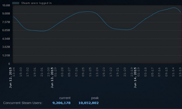 14 июня в Steam одновремено находилось более 10 млн человек. История рекордов: