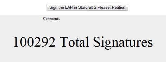 Активисты сразу же составили онлайн-петицию в адрес Blizzard с просьбой о включении игры по локальной сети StarCraft II. С того момента прошло уже полтора месяца, а число подписей превысило 100 тыс.