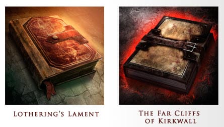 Речь идет о книгах The Far Cliffs of Kirkwall и Lothering's Lament, при чтении которых, соответственно, увеличивается количество денег и повышается опыт.
