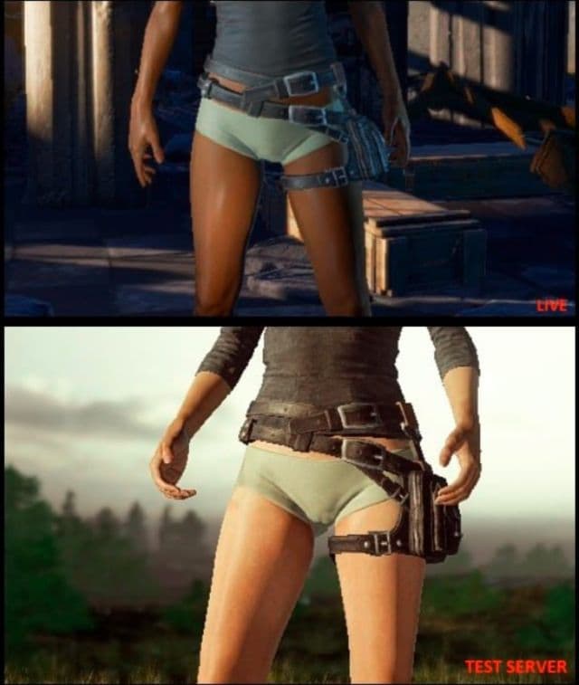 Недавно поклонники PlayerUnknown's Battlegrounds обнаружили одну занятную деталь у моделей женских персонажей, которые появились на тестовом сервере игры. У женских персонажей появилась так называемая «верблюжья лапка» (очертание вульвы, проступающее через облегающую одежду).