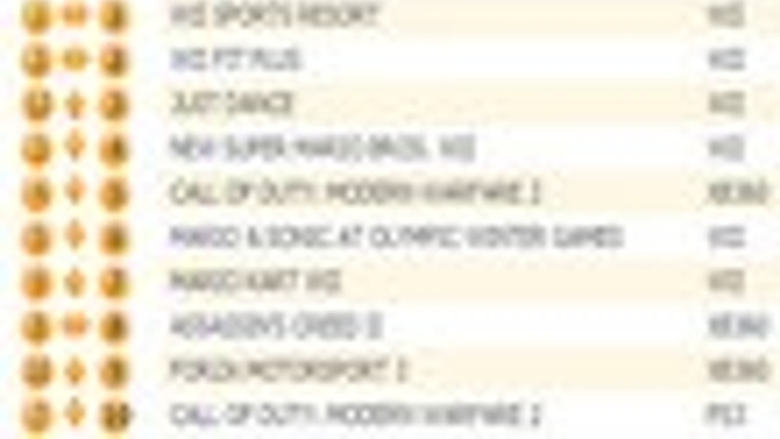Wii Sports Resort и Wii Fit Plus занимают, соответственно, четвертое и пятое места, а FIFA 10 - шестое. Замыкает десятку James Cameron's Avatar: The Game.