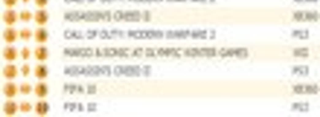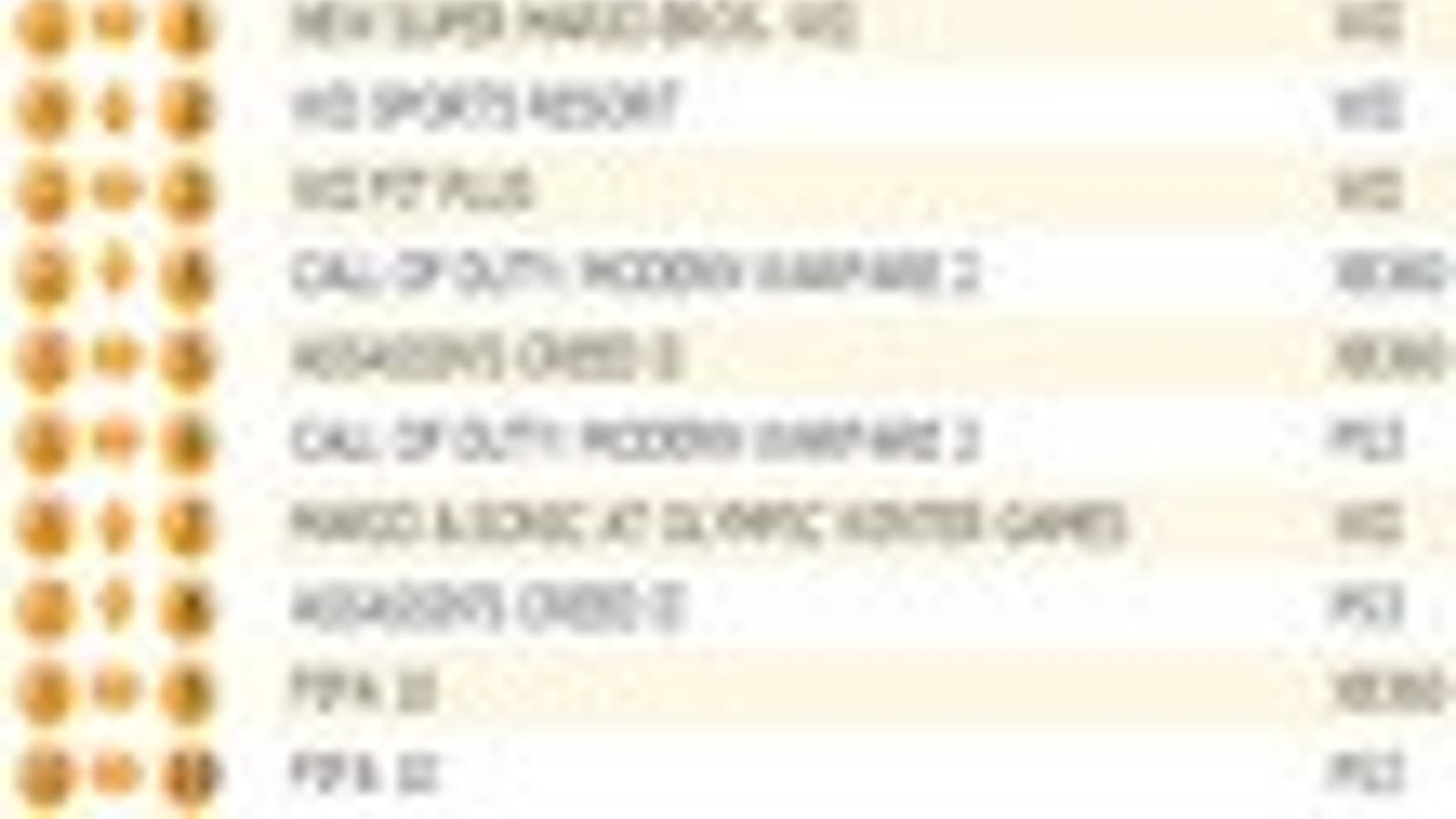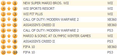 Места с четвертого по шестое заняли игры для Wii: New Super Mario Bros. Wii, Wii Sports Resort и Wii Fit Plus. Последние две улучшили свои показатели на 30 и 21%, соответственно.