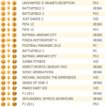 А вот в чарте продаж по конкретным платформам Uncharted 3: Drake's Deception опережает Battlefield 3 для Xbox 360 и PS3.