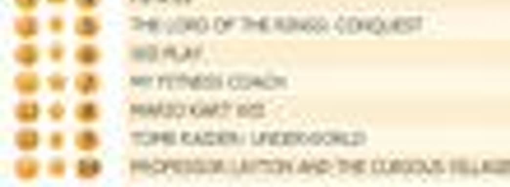Седьмую позицию занял новичок в лице очередного виртуального тренажера My Fitness Coach для Wii, также примечательно возвращение Tomb Raider Underworld с 33 на 9 место.