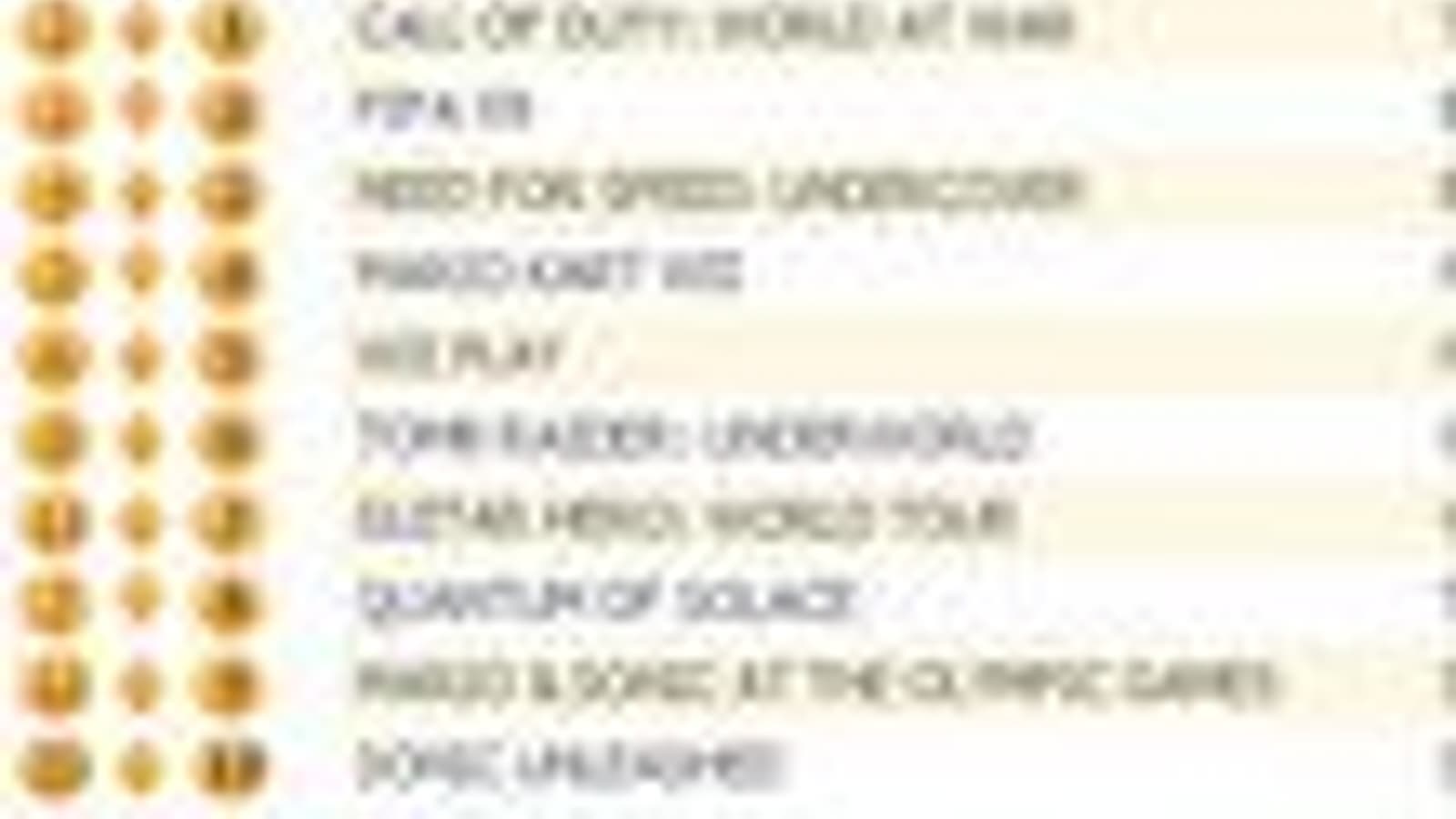 Особых изменений по сравнению с прошлой неделей не произошло. Call of Duty: World at War вернулась на первую строчку, вновь поменявшись местами со спортивным симулятором FIFA 09. Бронза досталась гонкам Need fo Speed Undercover, который отодвинул Mario Kart Wii на четвертую строчку хит-парада.