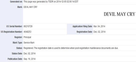 На сайте United States Patent and Trademark Office несколько дней была обновлена информация о торговой марке Devil May Cry, владелицей которой выступает компания Capcom.