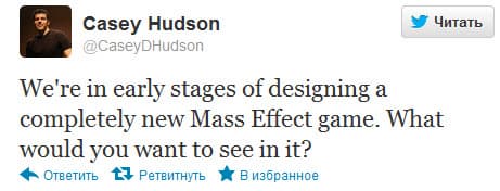 На своей twitter-страничке глава команды разработчиков Mass Effect 3 Кэйси Хадсон (Casey Hudson) оставил следующее сообщение, которое порадует поклонников данной серии.