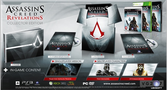 А на сайте австралийского Ubishop появилось описание коллекционного издания Assassin's Creed: Revelations, которое будет включать, помимо копии игры, специальную упаковку, арт-бук, оригинальный саундтрек, короткометражный фильм, дополнительный игровой контент.
