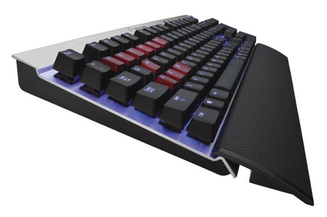 Остальные характеристики выглядят уже знакомыми. Полностью механические клавиши Cherry MX Red, мультимедийные кнопки; функция распознавания случайных нажатий (до двадцати одновременно), а также встроенный USB-порт, подключаемый напрямую ко второму USB-разъему системного блока. В комплекте имеется подставка для запястий и дополнительные клавиши WASDи 1-6.