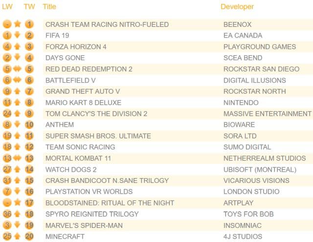 На прошлой неделе Crash Team Racing Nitro-Fueled продавалась почти в восемь раз лучше, чем футбольный симулятор FIFA 19, расположившийся на второй строчке.