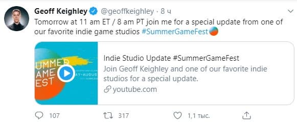 Пока новость не подтвердилась, но журналист Джефф Кейли уже пригласил игроков на специальное обновление от «одной из наших любимых инди-студий». Шоу состоится в 18:00 по московскому времени.