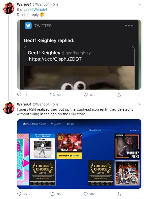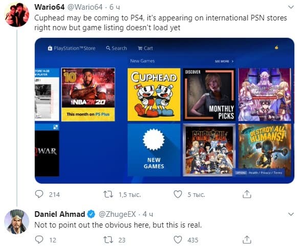 Несколько часов назад игроки заметили значок Cuphead в британском магазине PlayStation Store. Игра из него уже исчезла, но появляется в других регионах. Более того, в указанном магазине можно увидеть пустое место среди иконок. Старший аналитик Niko Partners Даниэль Ахмад уверен, что Cuphead выйдет на PlayStation 4.