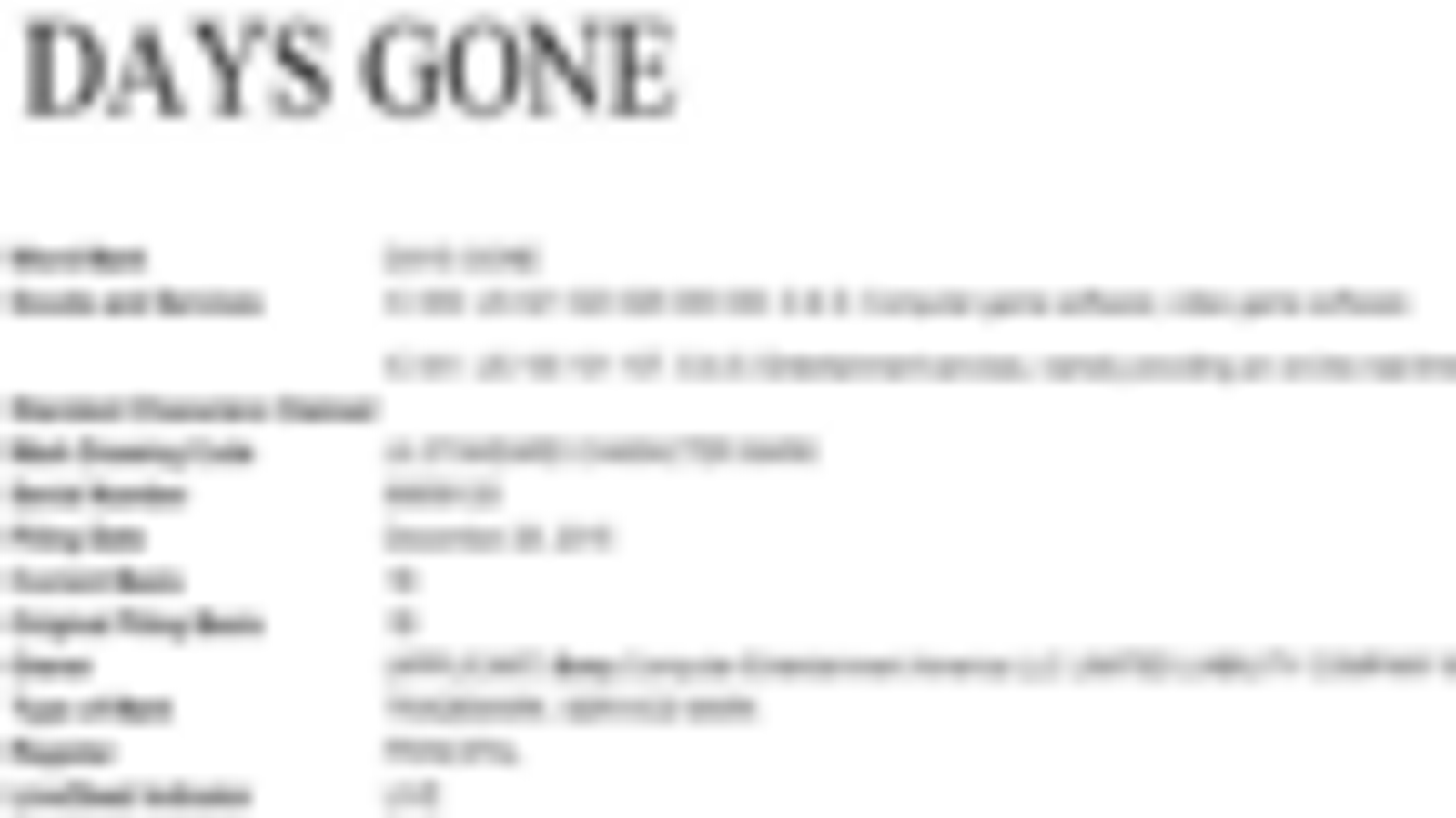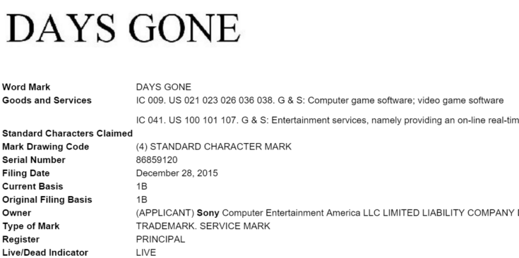 Компания Sony зарегистрировала в United States Patent and Trademark Office (USPTO) торговую марку Days Gone, которая может использоваться для названия игрового программного обеспечения.