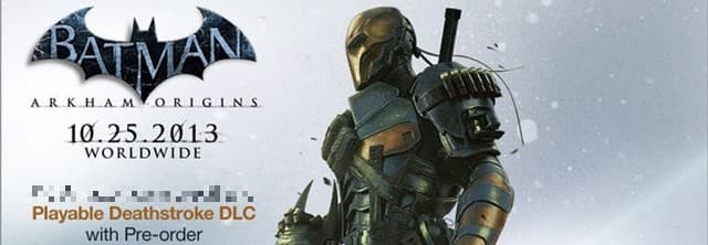 Ещё до выхода первого официального трейлера Batman: Arkham Origins в сети появилась информация о загружаемых дополнениях для игры. В частности, на сайте Amazon в качестве бонуса за предварительный заказ значится наличие наёмника Deathstroke в качестве играбельного персонажа. Что особенно интересно, в недавно опубликованном тизере Deathstroke сражался с Бэтменом. Будет ли в игре возможность избить Тёмного рыцаря, пока неизвестно.