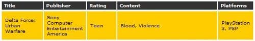 На сайте рейтинговой организации Entertainment Software Rating Board появилась информация о том, что к выходу для PlayStation 3 и PSP готовится шутер от первого лица Delta Force: Urban Warfare. Издателем игры будет Sony Computer Entertainment America.