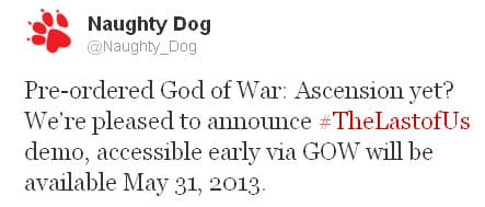 В начале года было объявлено о том, что покупатели грядущего приключенческого экшена God of War: Ascension получат ранний доступ к демонстрационной версии другого PS3-эксклюзива The Last of Us.