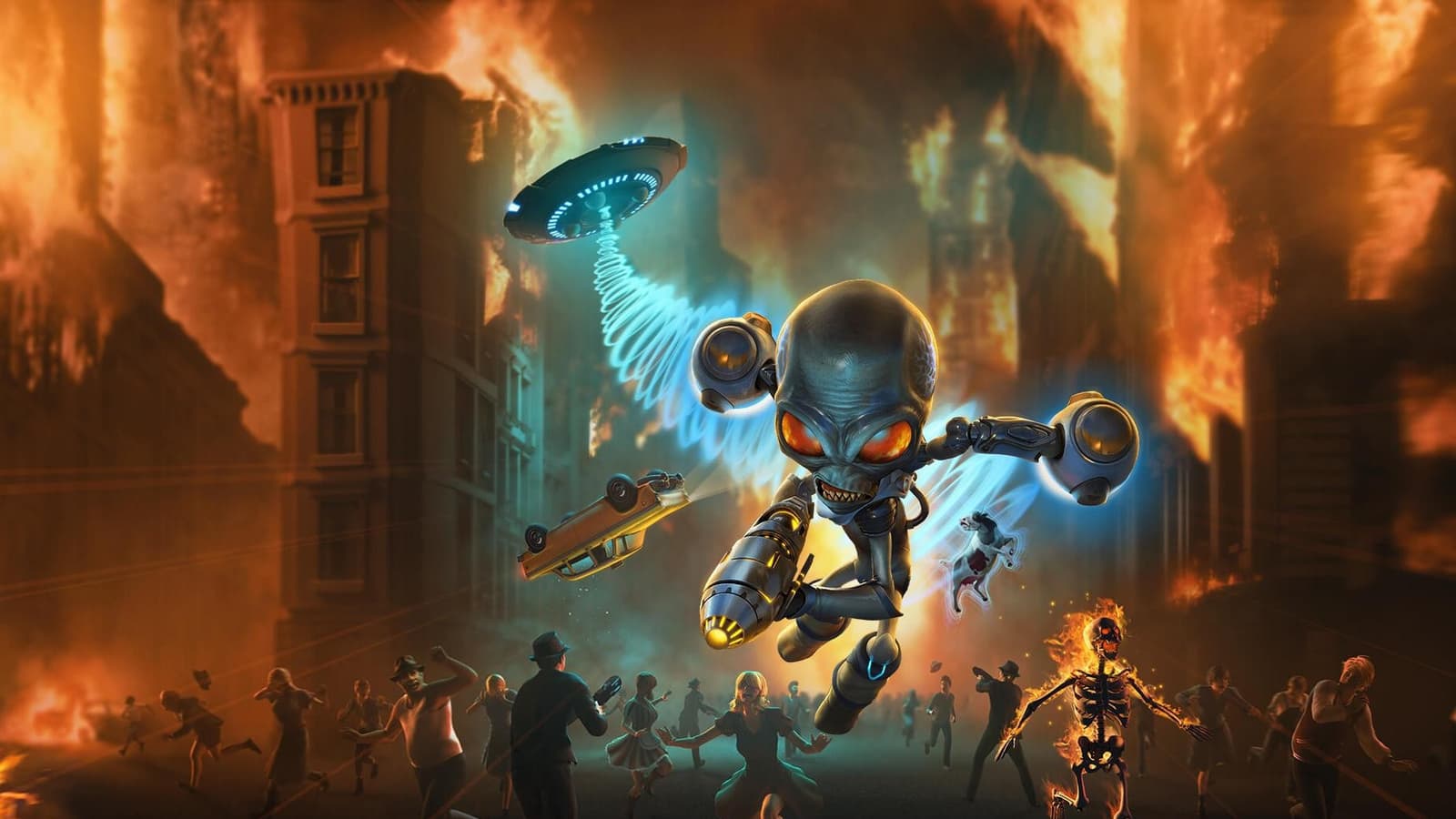 В сети появился новый ролик ремейка комедийного боевика Destroy All Humans! В ролике президент США сообщает о том, что на Америку совершено нападение. Также нам показывают, как злобный пришелец расправляется с людишками с помощью футуристического оружия, паранормальных способностей и уничтожает постройки, управляя летающей тарелкой. Разрушение Белого Дома прилагается.